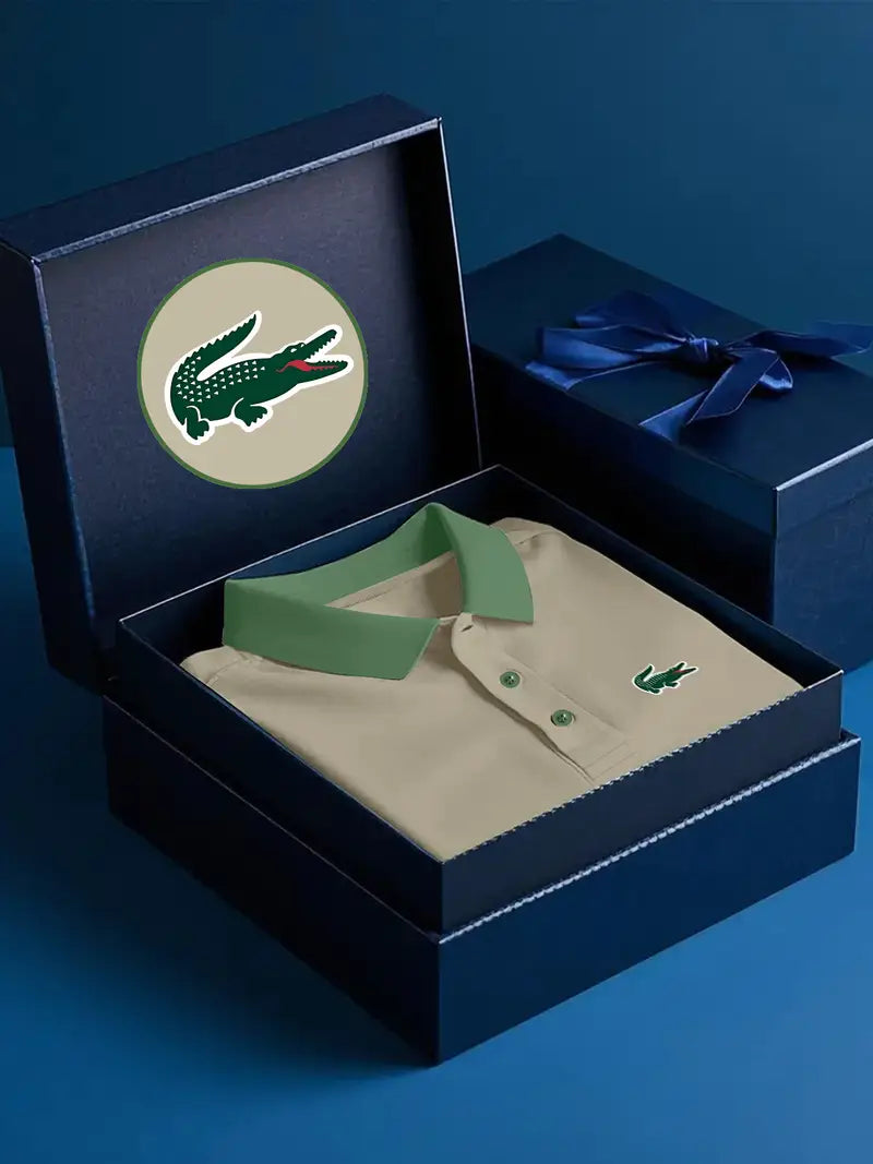 Men's Shirt - Pink & Golden Golf Tennis Shirt with Button-Front Placket, Formal presentation box